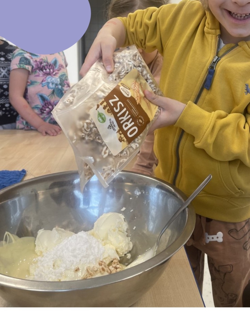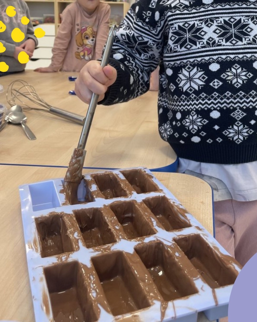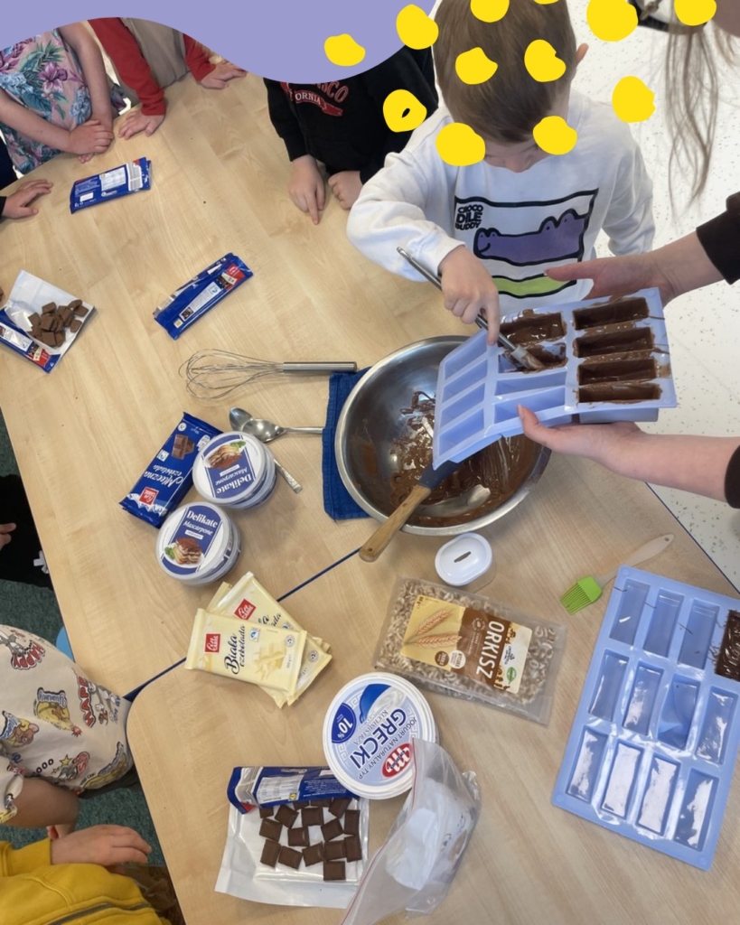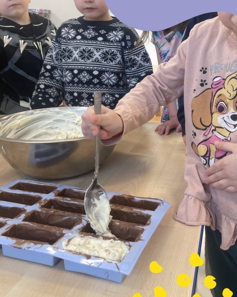 Z okazji Dnia Czekolady przygotowaliśmy dla naszych przedszkolaków czekoladowe warsztaty, podczas których dzieci tworzyły własną, zdrowszą wersję kultowego batonika Kinder Country!