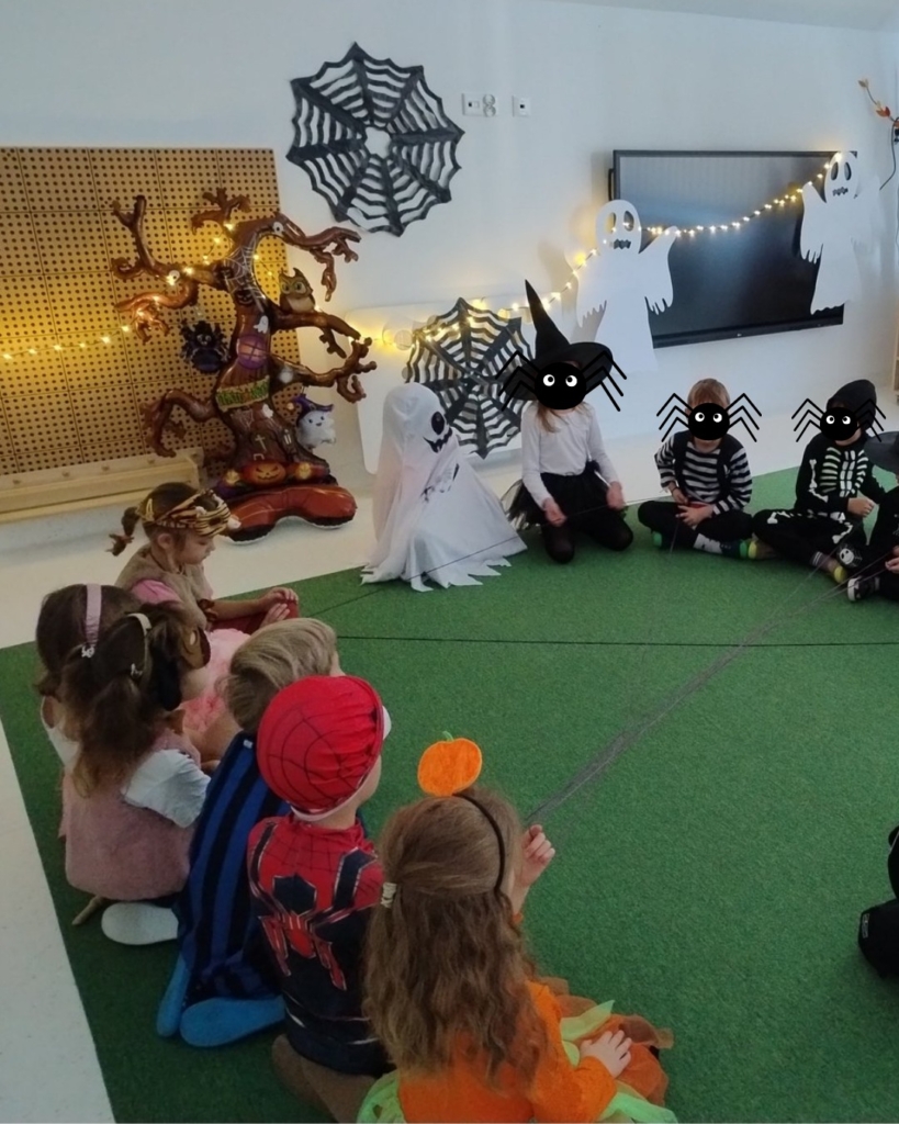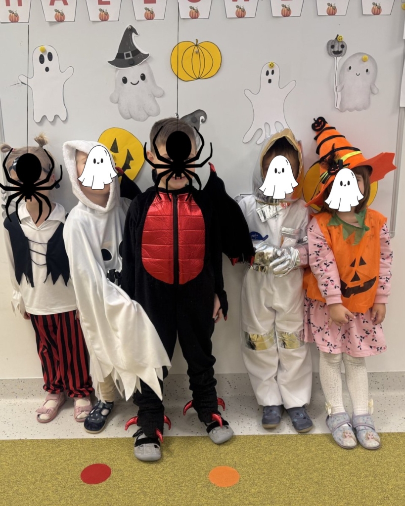 Były przebrania, halloweenowe eksperymenty, kreatywne zabawy i mnóstwo śmiechu. Dzieciaki czarowały, mieszały mikstury i bawiły się w najlepsze — w końcu Halloween to doskonała okazja, by połączyć zabawę z nauką i wyobraźnią! 🧙♀️🧪✨