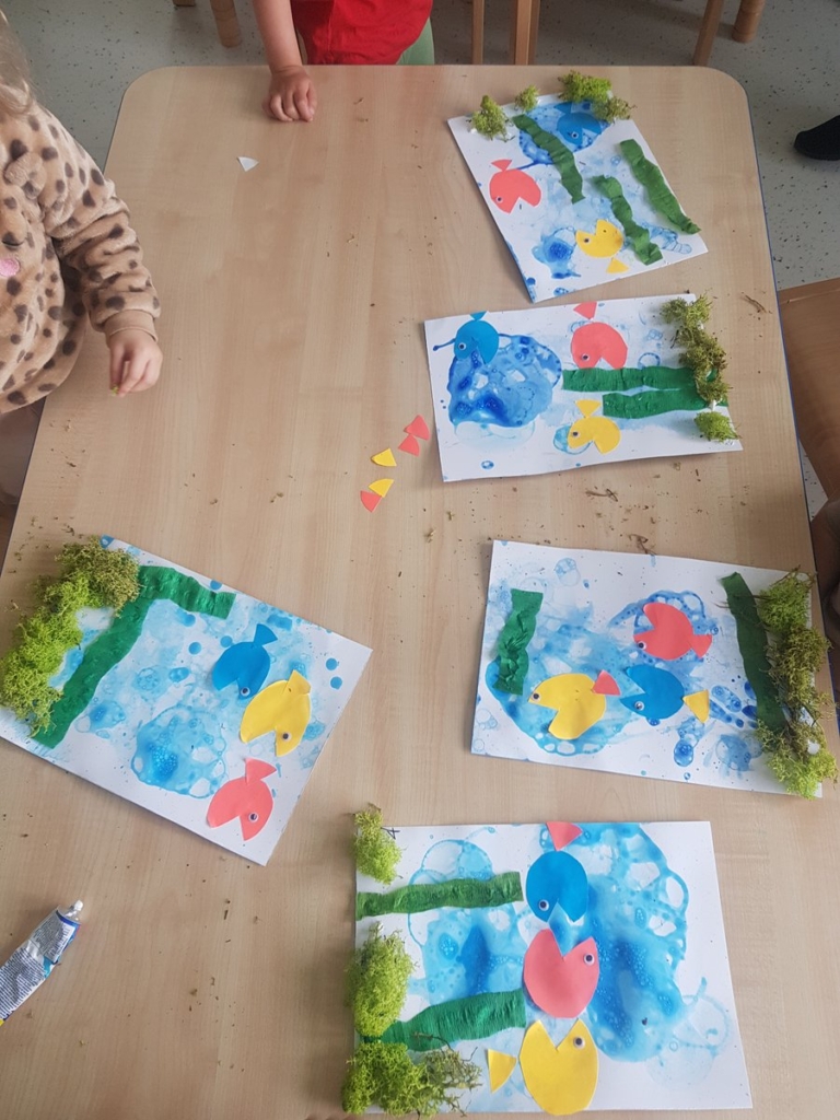 Dzieci ćwiczyły też motorykę małą i rozwijały kreatywność poprzez wykonywanie prac plastycznych o zróżnicowanej tematyce.