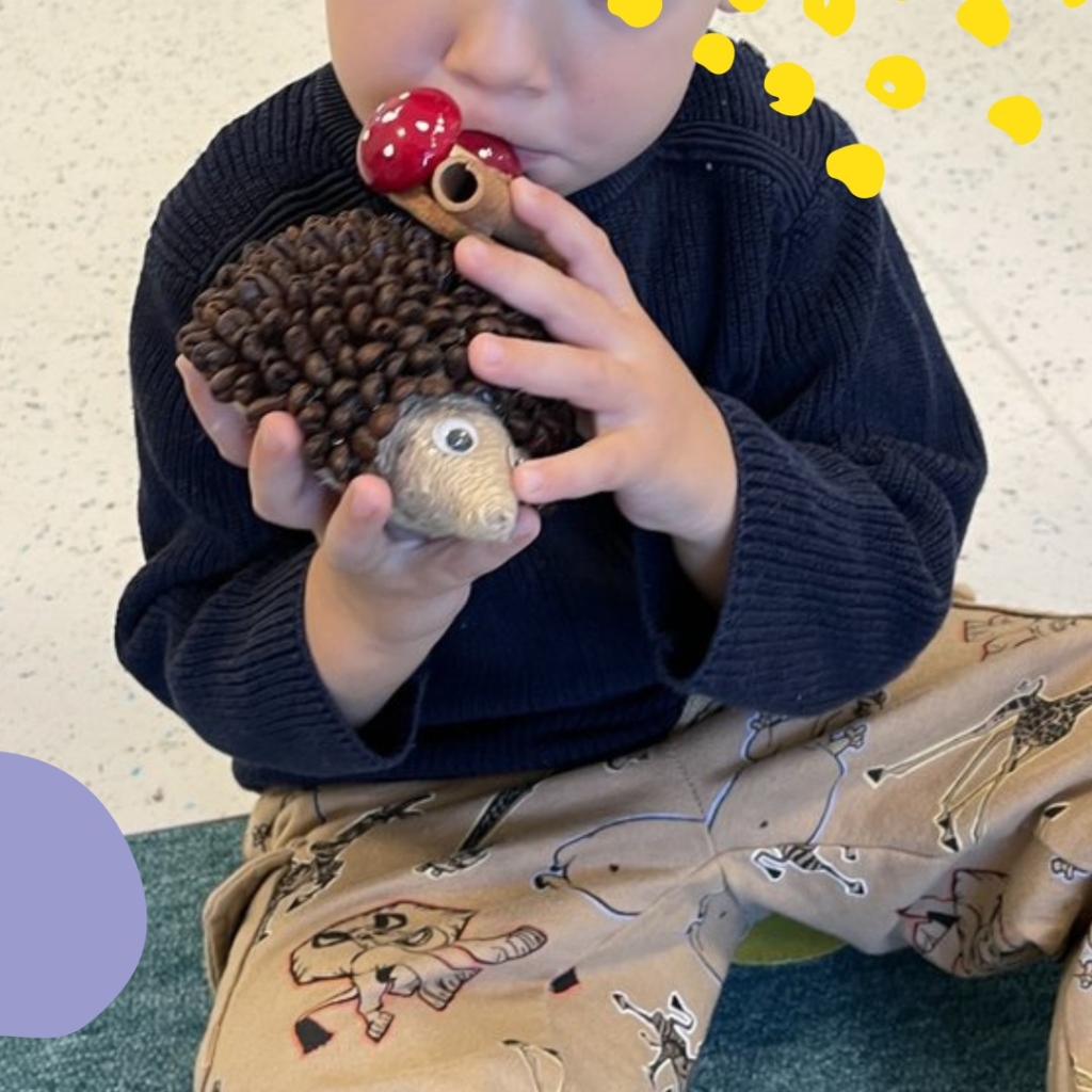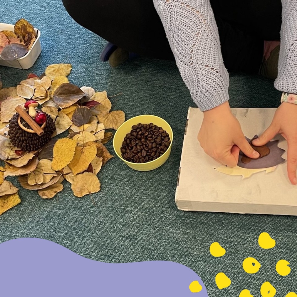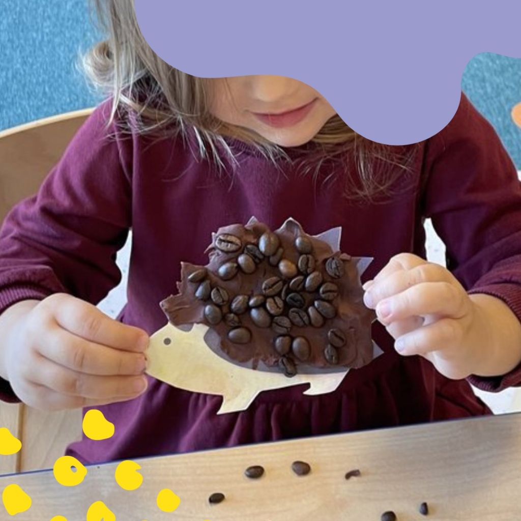 Na zajęciach kreatywnych dzieci stworzyły aromatycznego jeża z ziaren kawy