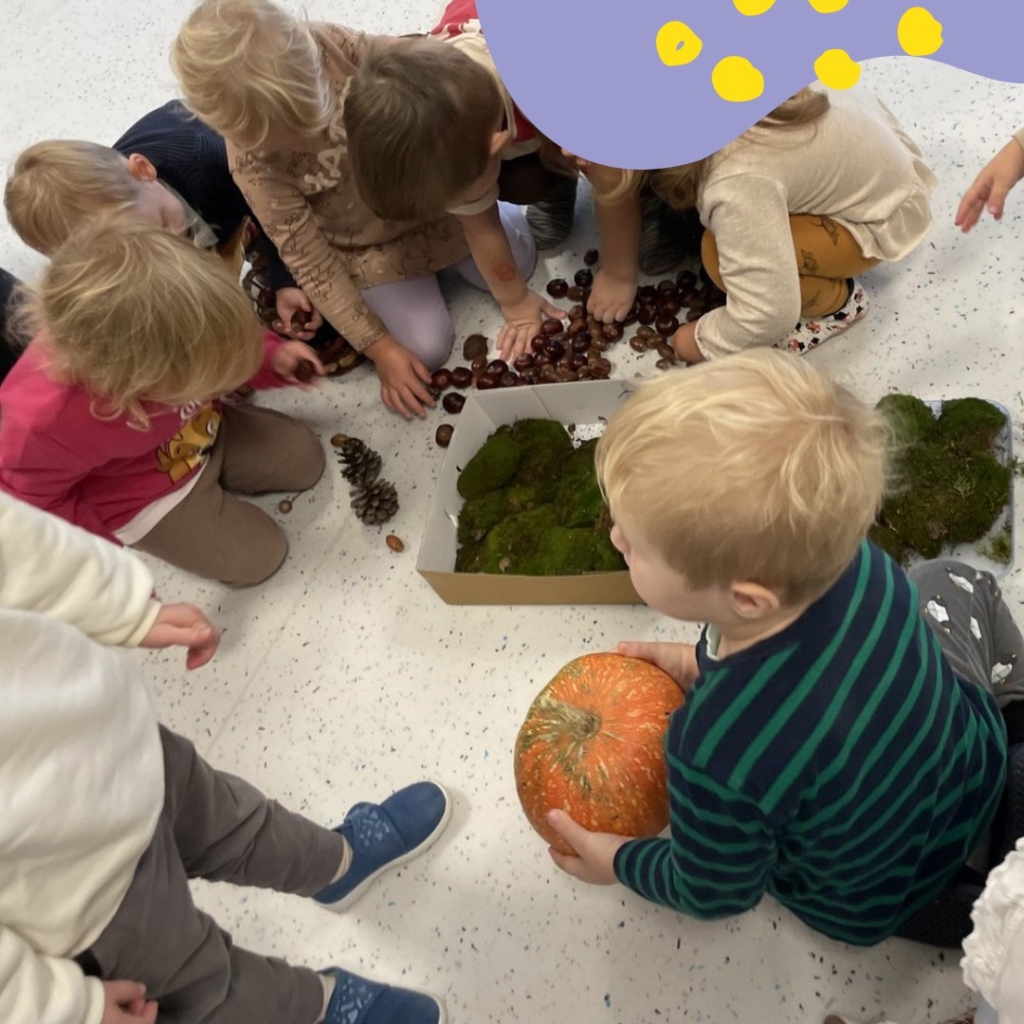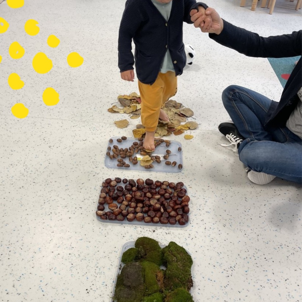 , a także sensoryczną ścieżkę z darów jesieni, na której mogły poczuć pod stopami szeleszczące liście, mech, żołędzie i kasztany! ![]()