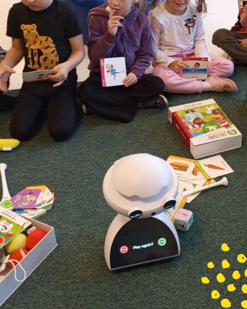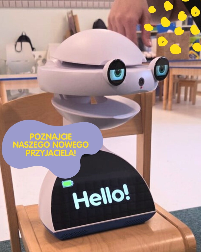 Z radością informujemy, że do naszej przedszkolnej rodziny dołączył EMYS — anglojęzyczny robot edukacyjny, który wzbogaca naukę języka angielskiego w zabawny, interaktywny sposób.